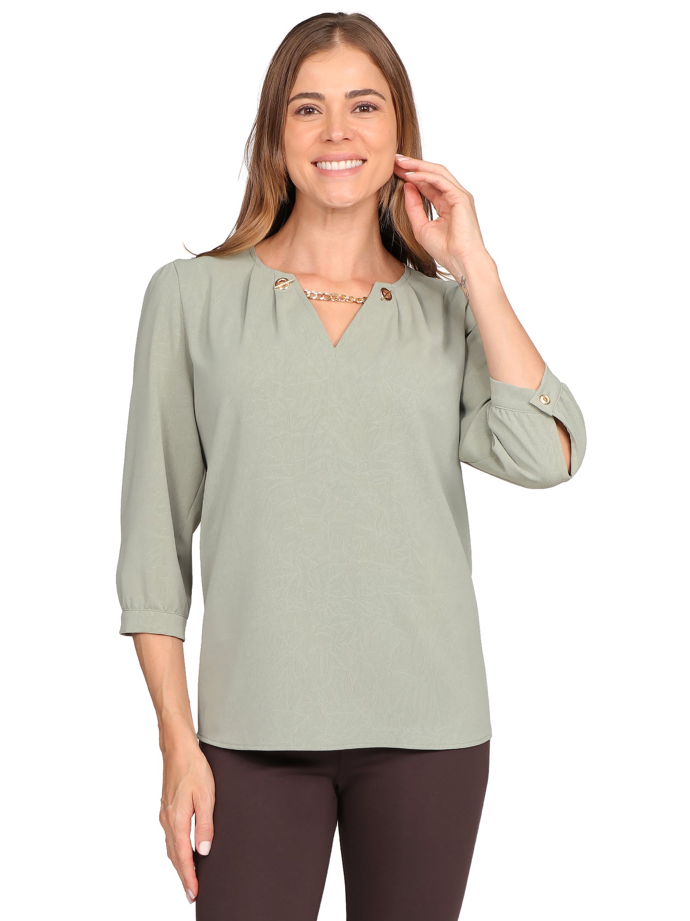 Blusa Cuello Redondo, Con Cadena, Manga 3/4