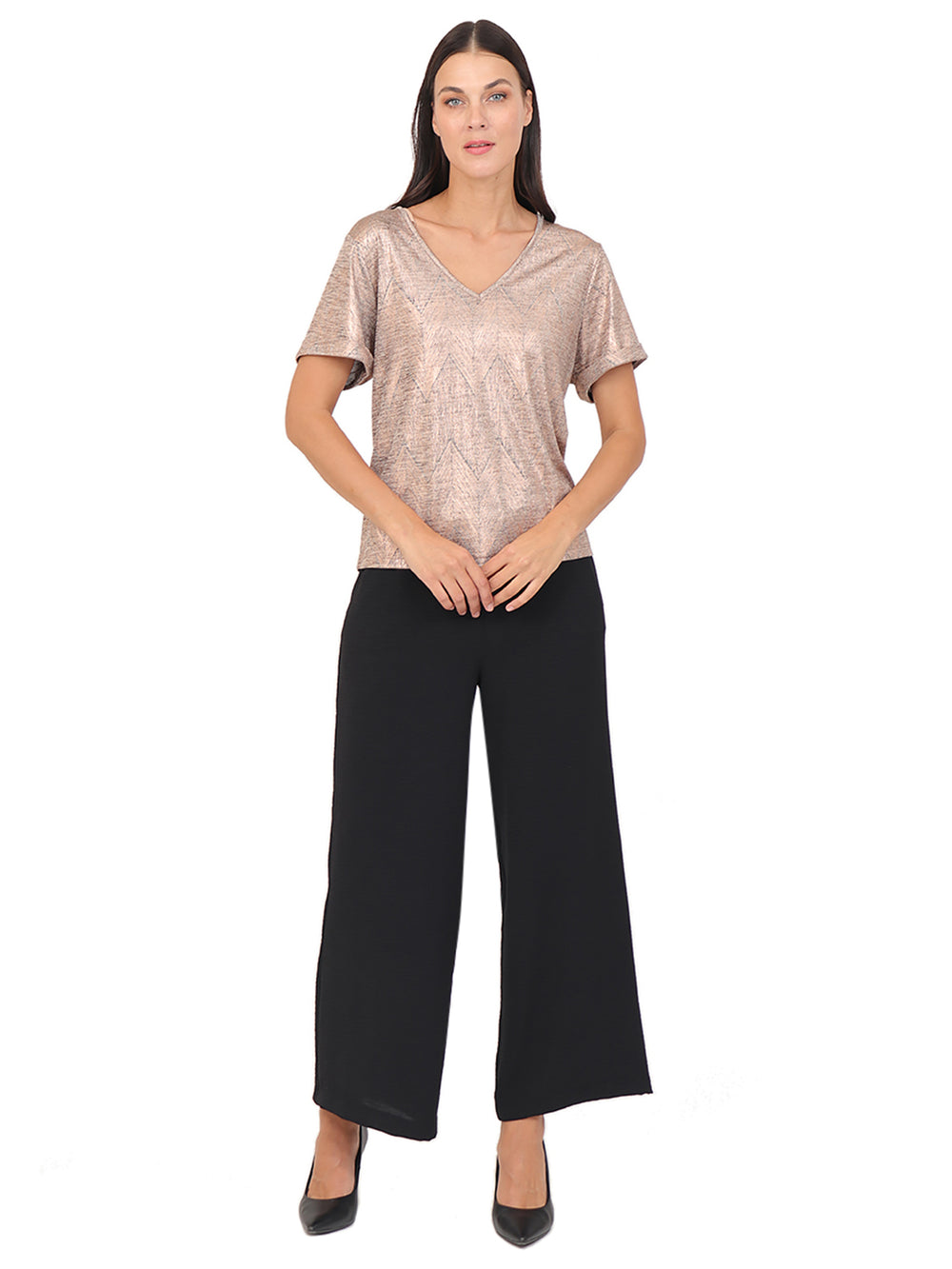 Blusa Cuello Redondo, Manga Corta, Estampada con Brillos