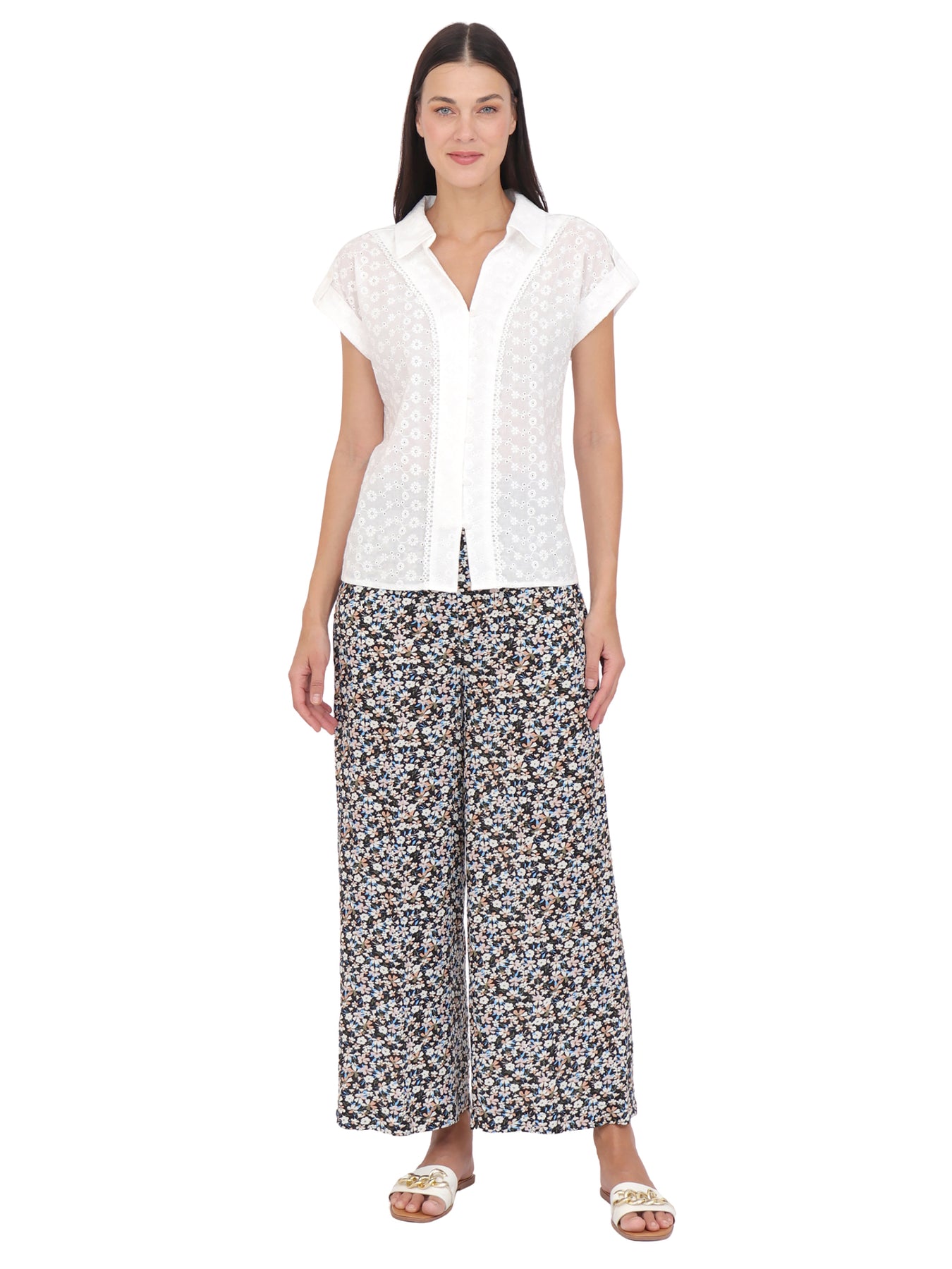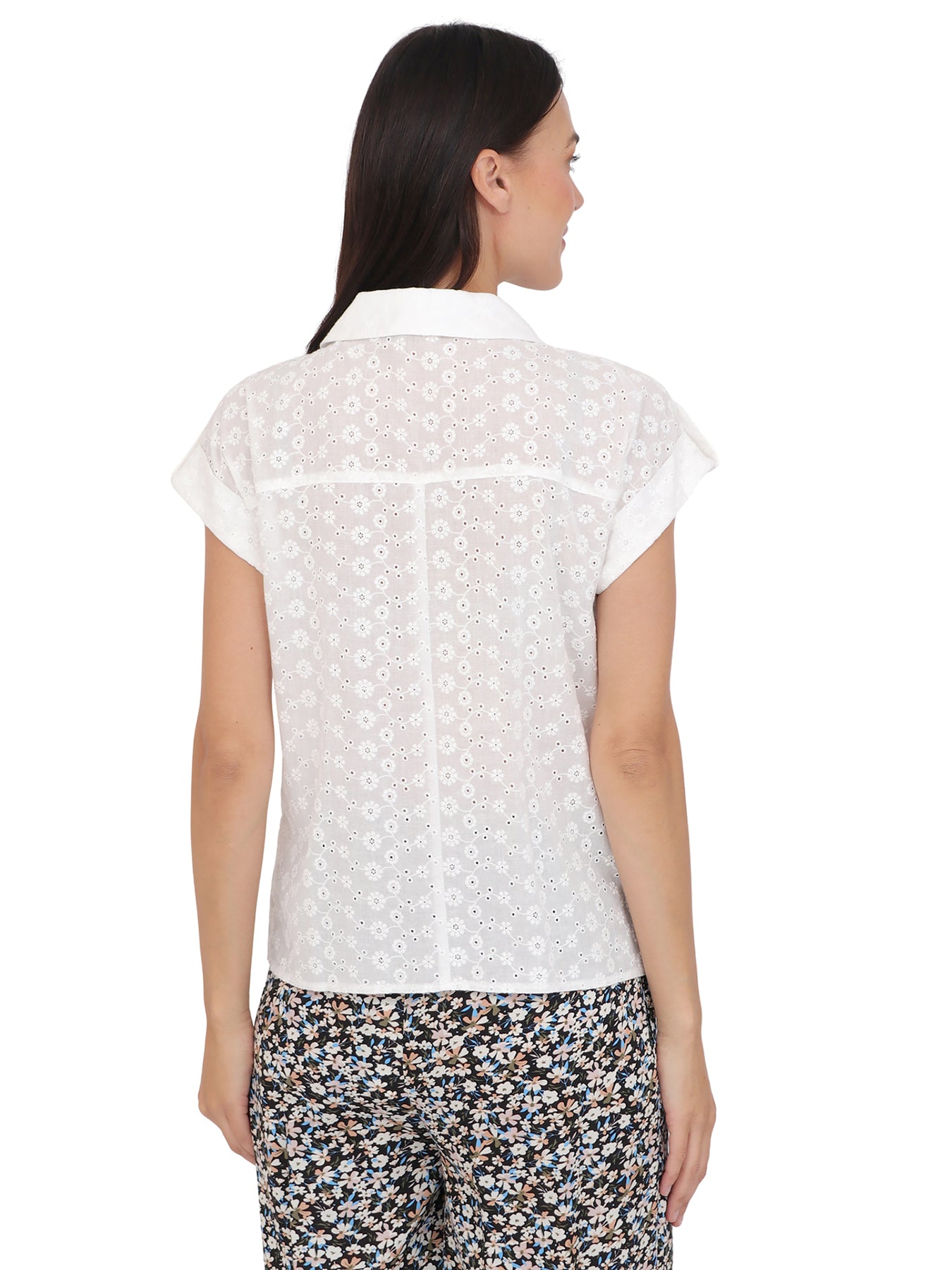 Blusa cuello Camisero ,Manga Corta, Algódon Bordado