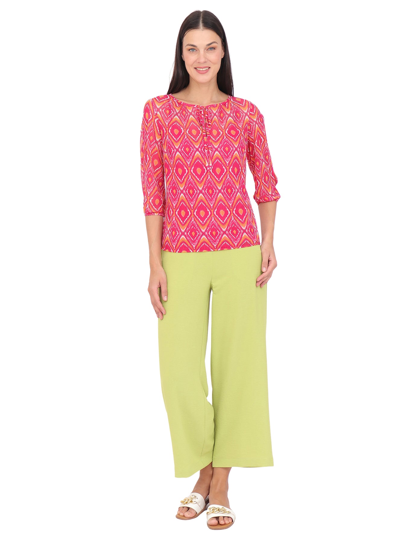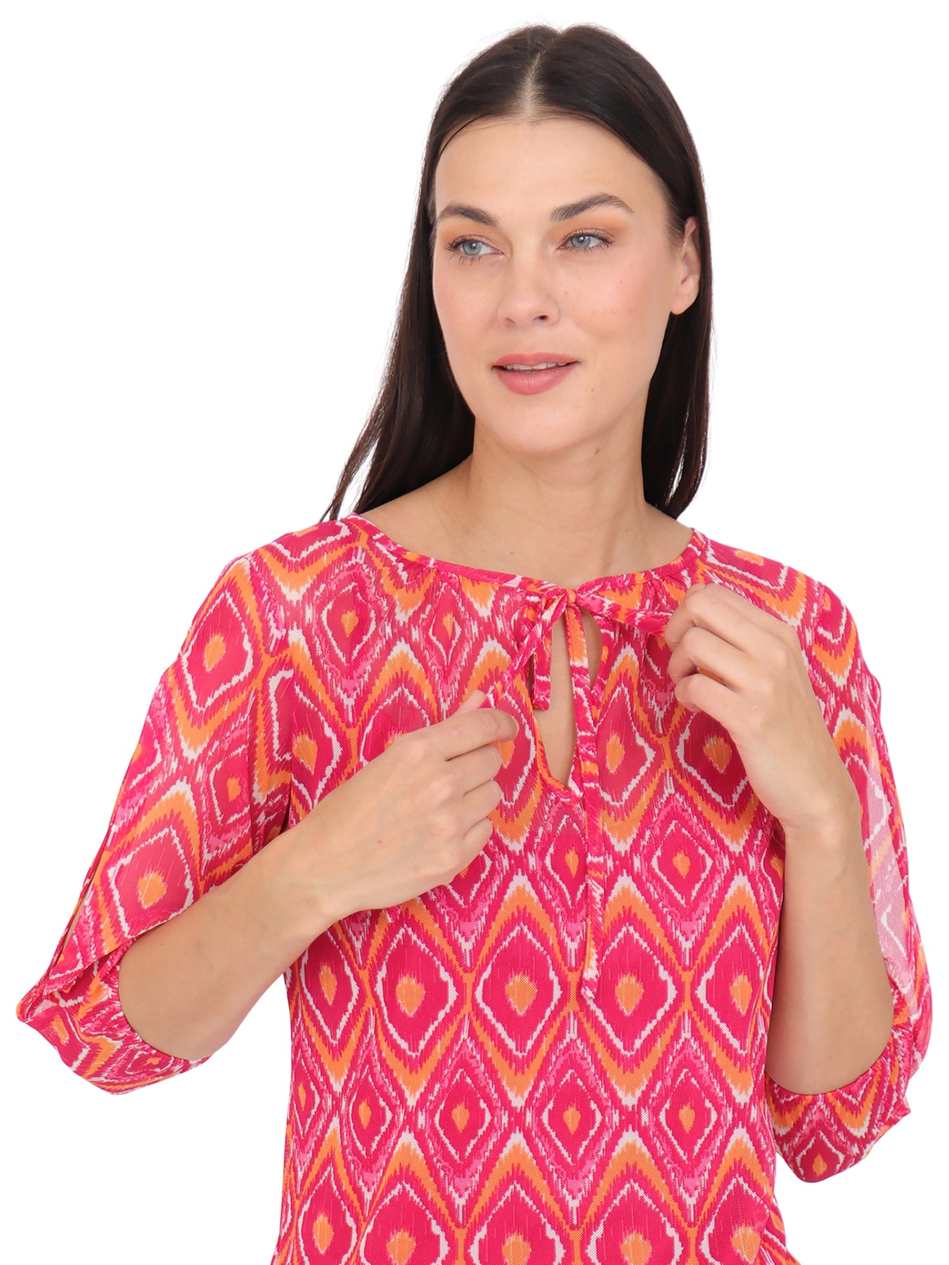 Blusa cuello Redondo, Manga 3/4, con Amarre, Estampada