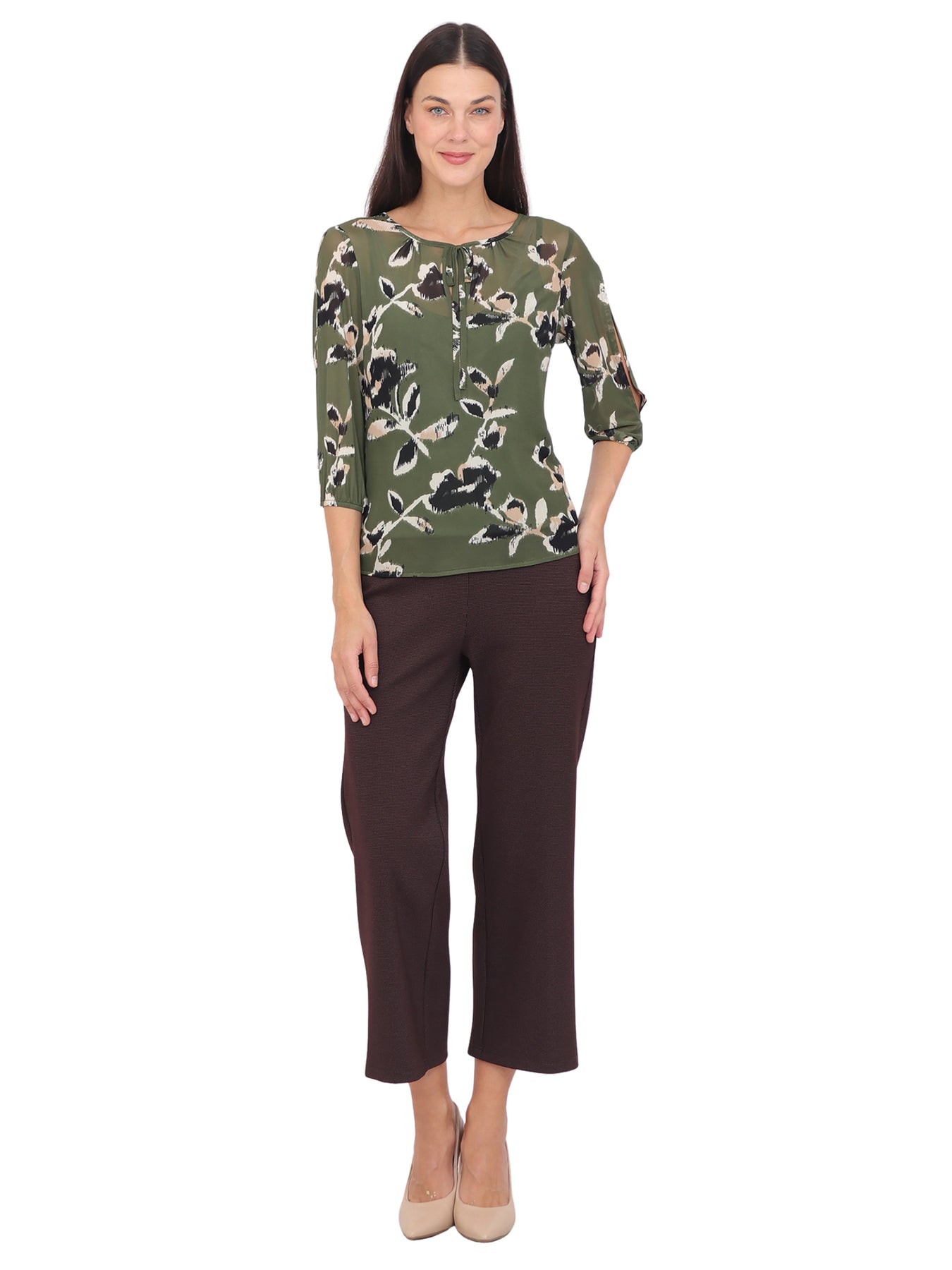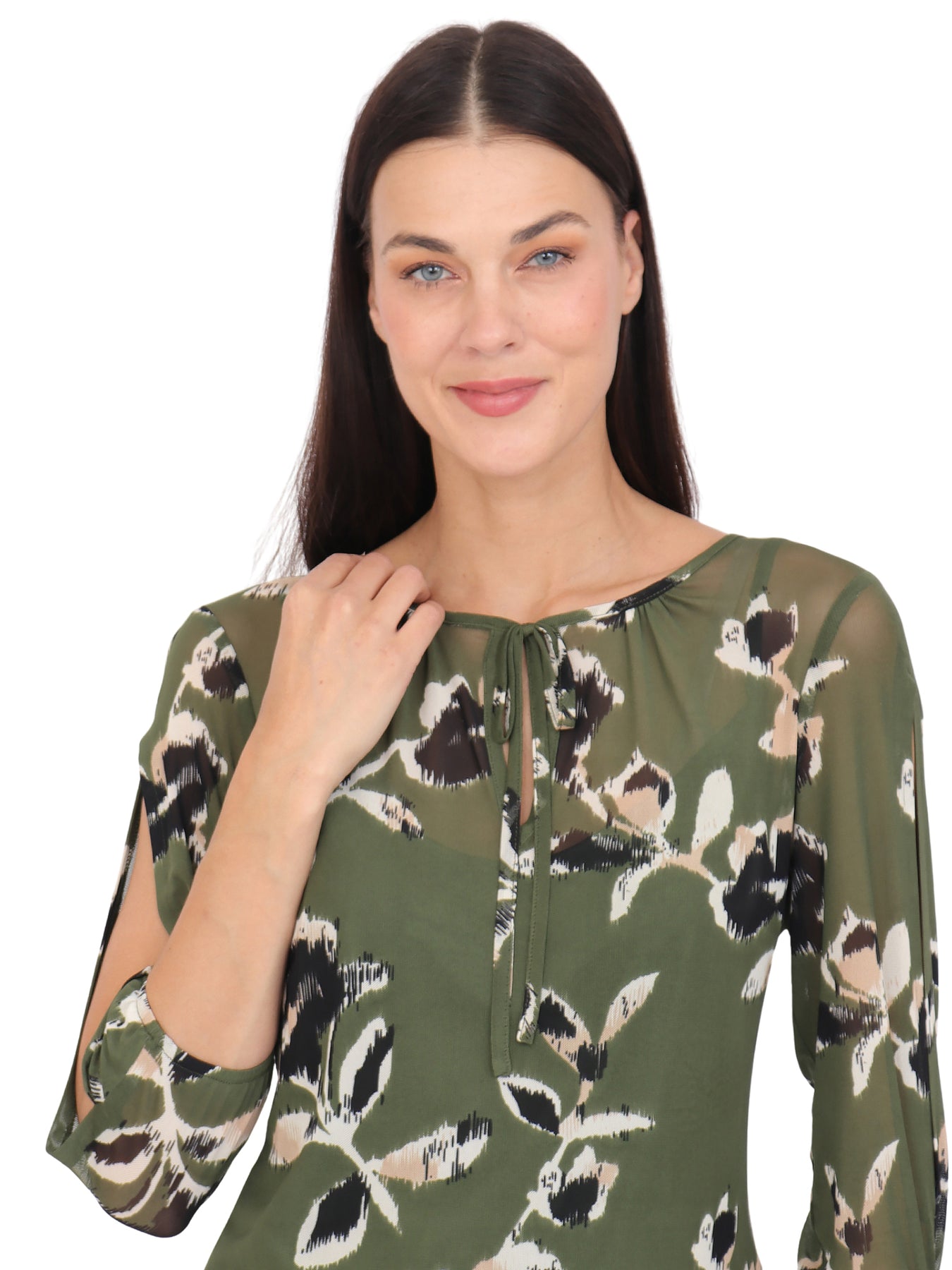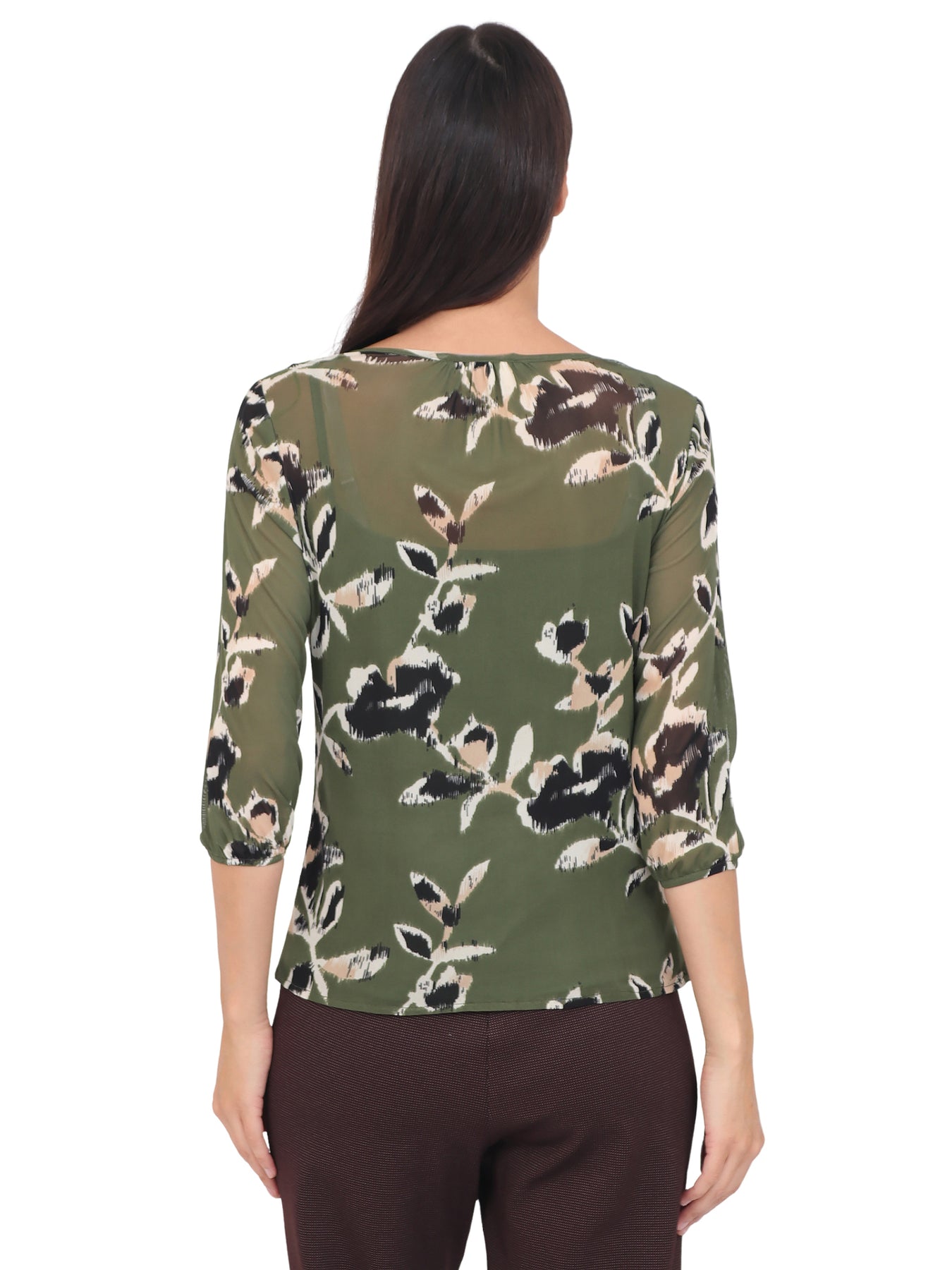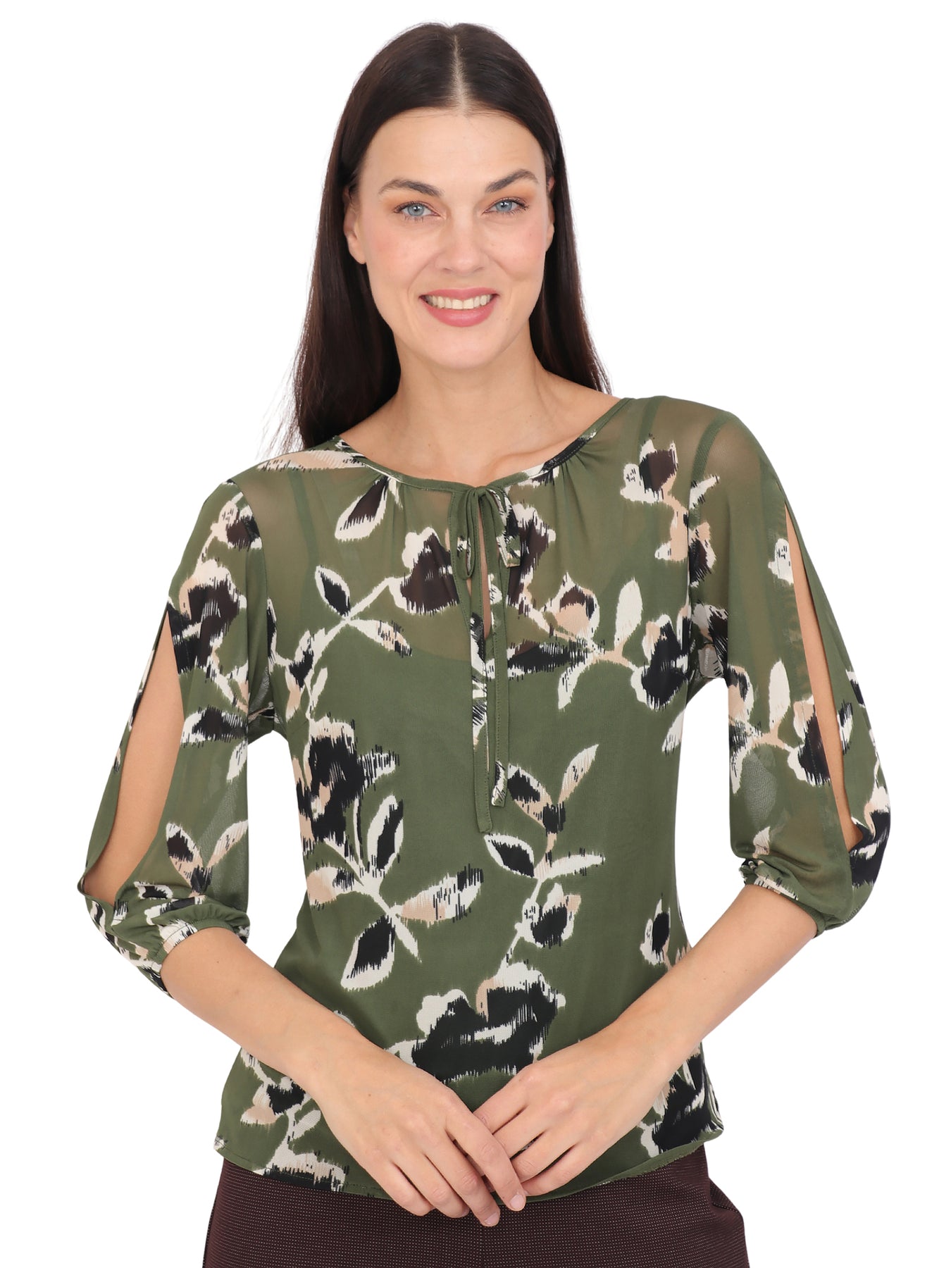Blusa cuello Redondo, Manga 3/4, con Amarre, Estampada
