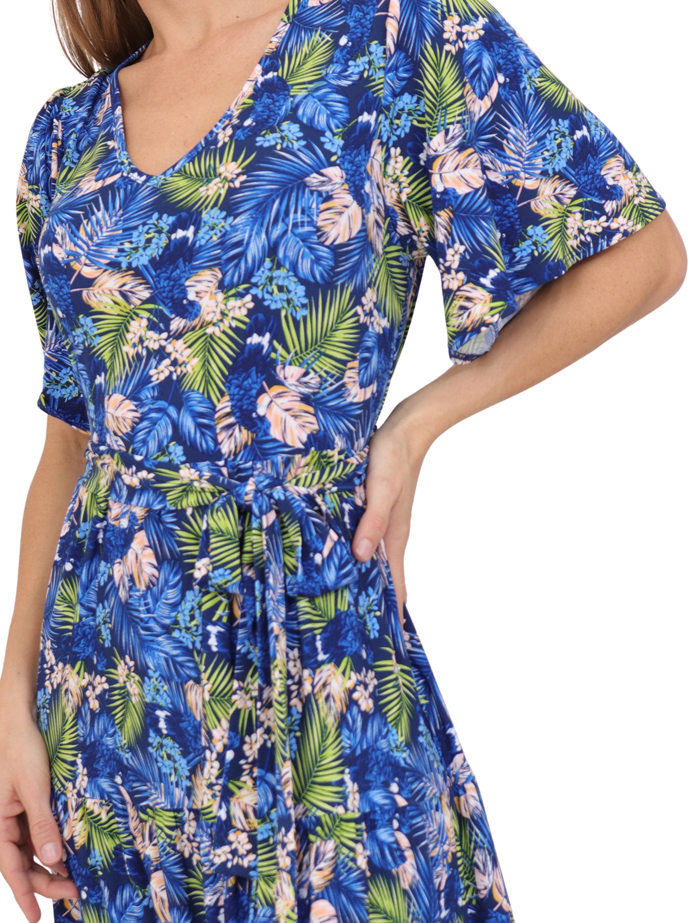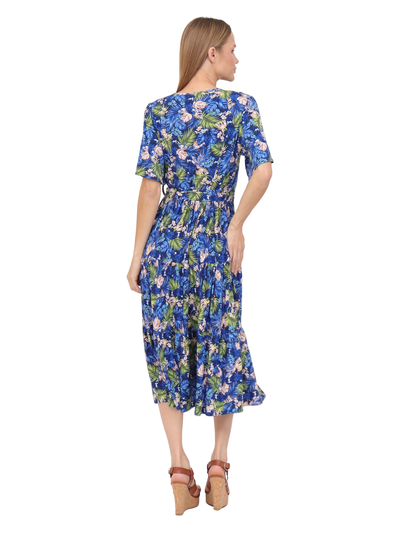 Vestido  Cuello V, Manga Olán, Largo,  Estampado