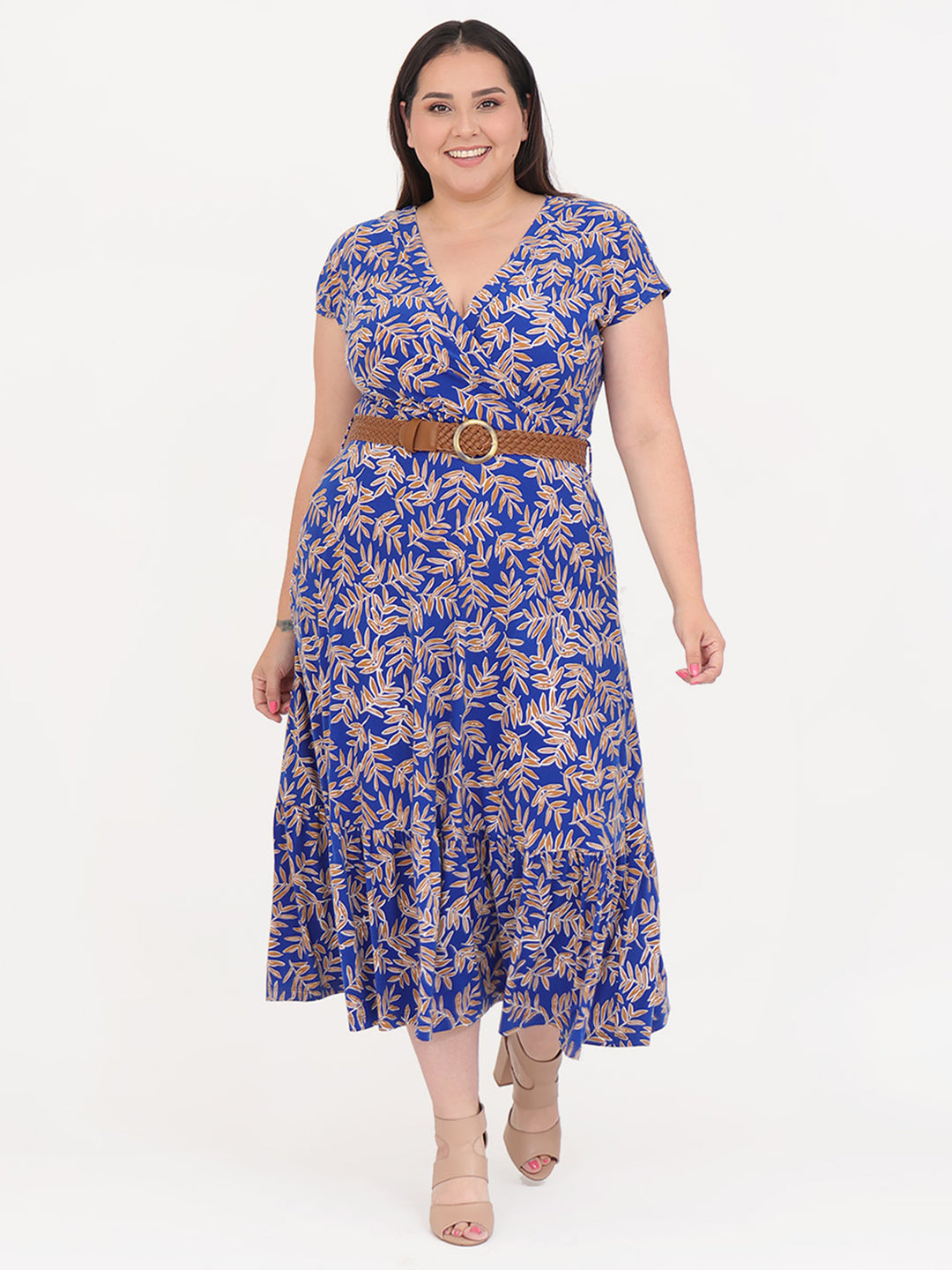 Vestido Curvy Carilo, Cuello en V, Cruzado, Manga Corta