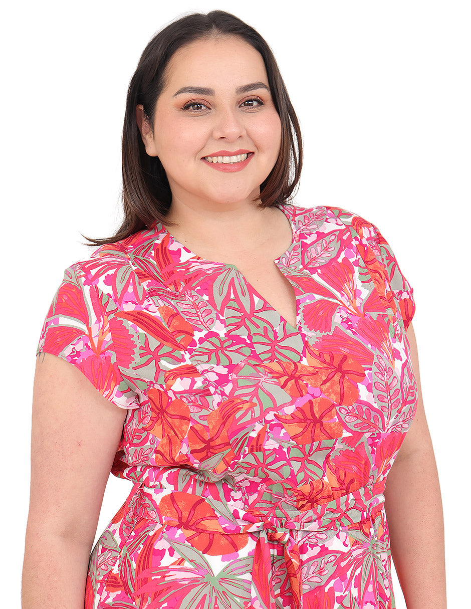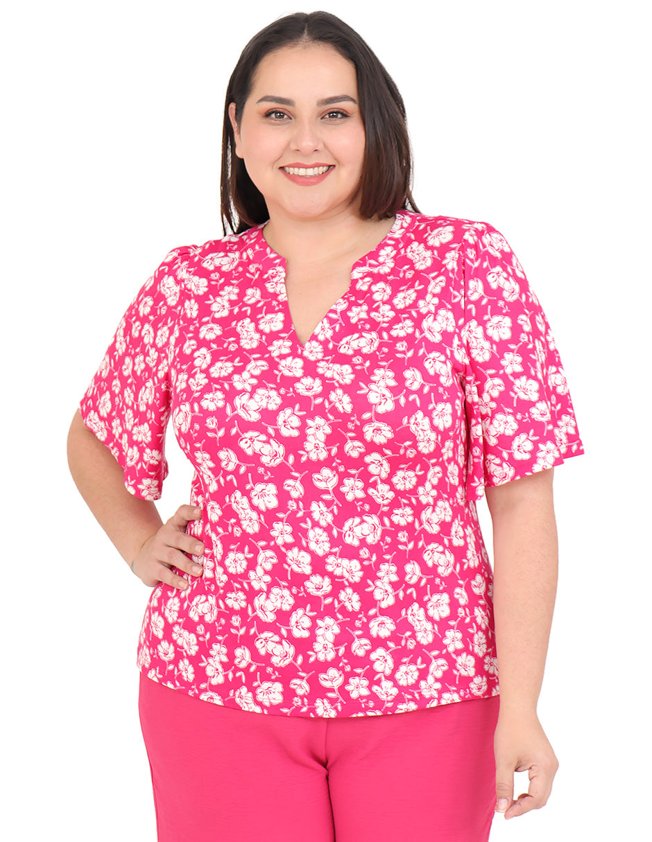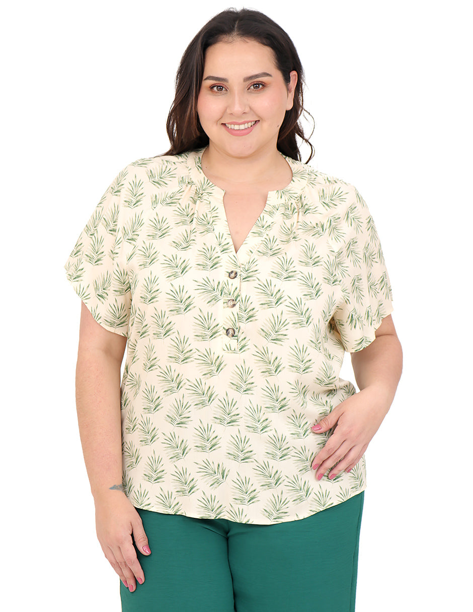 Blusa Curvy Carilo, Cuello V, Manga Corta, Estampada