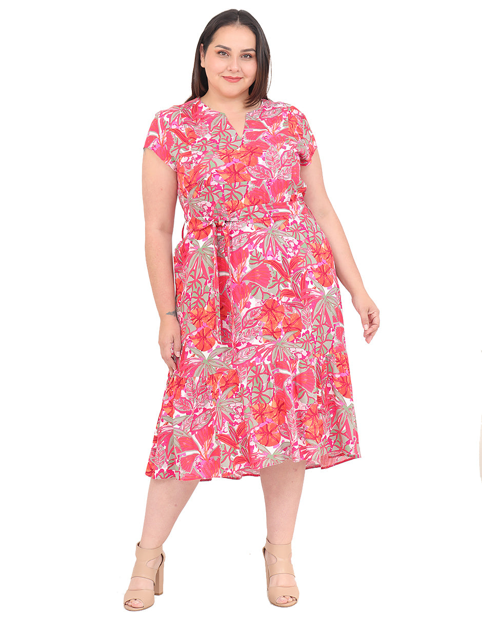 Vestido Curvy Carilo, Cuello en Redondo, Manga Corta