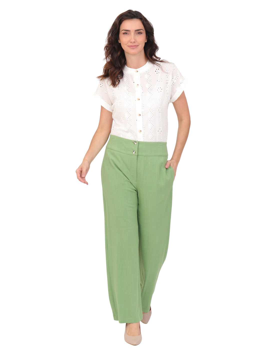 Pantalón Recto, Liso, botones al Frente