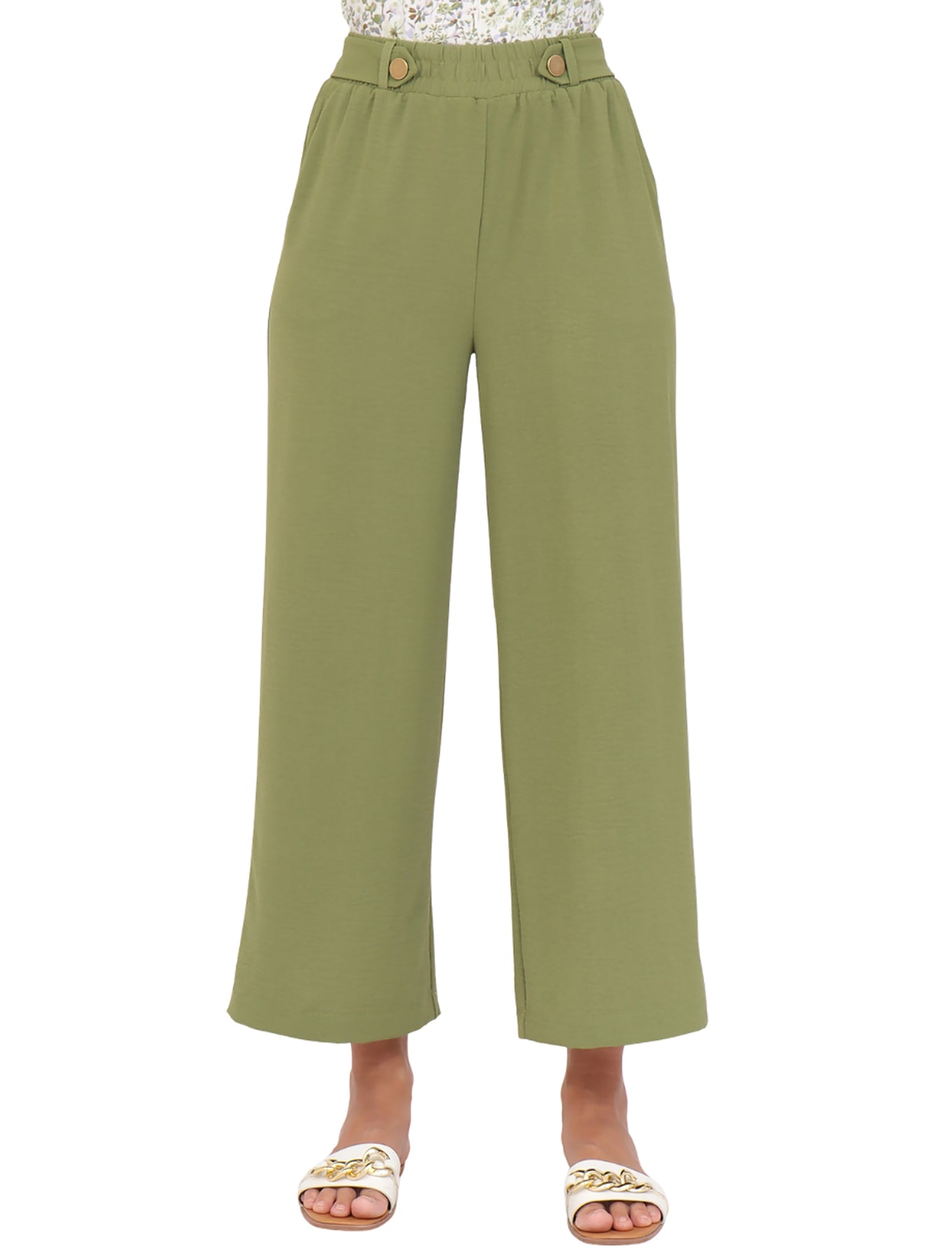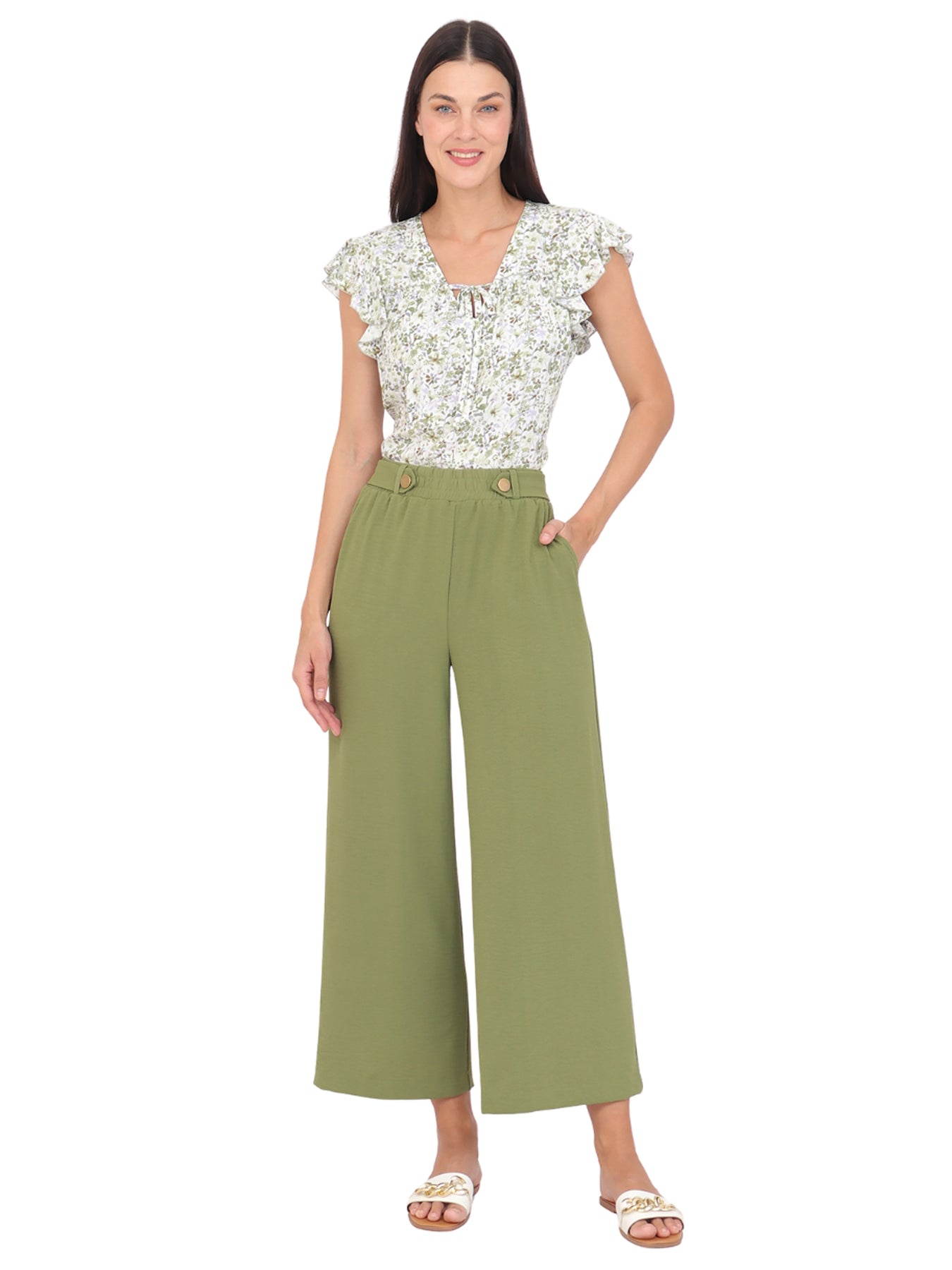 Pantalones  de tiro alto , de pierna ancha, largo al tobillo, tejido ligero y fluido, silueta recta y relajada,