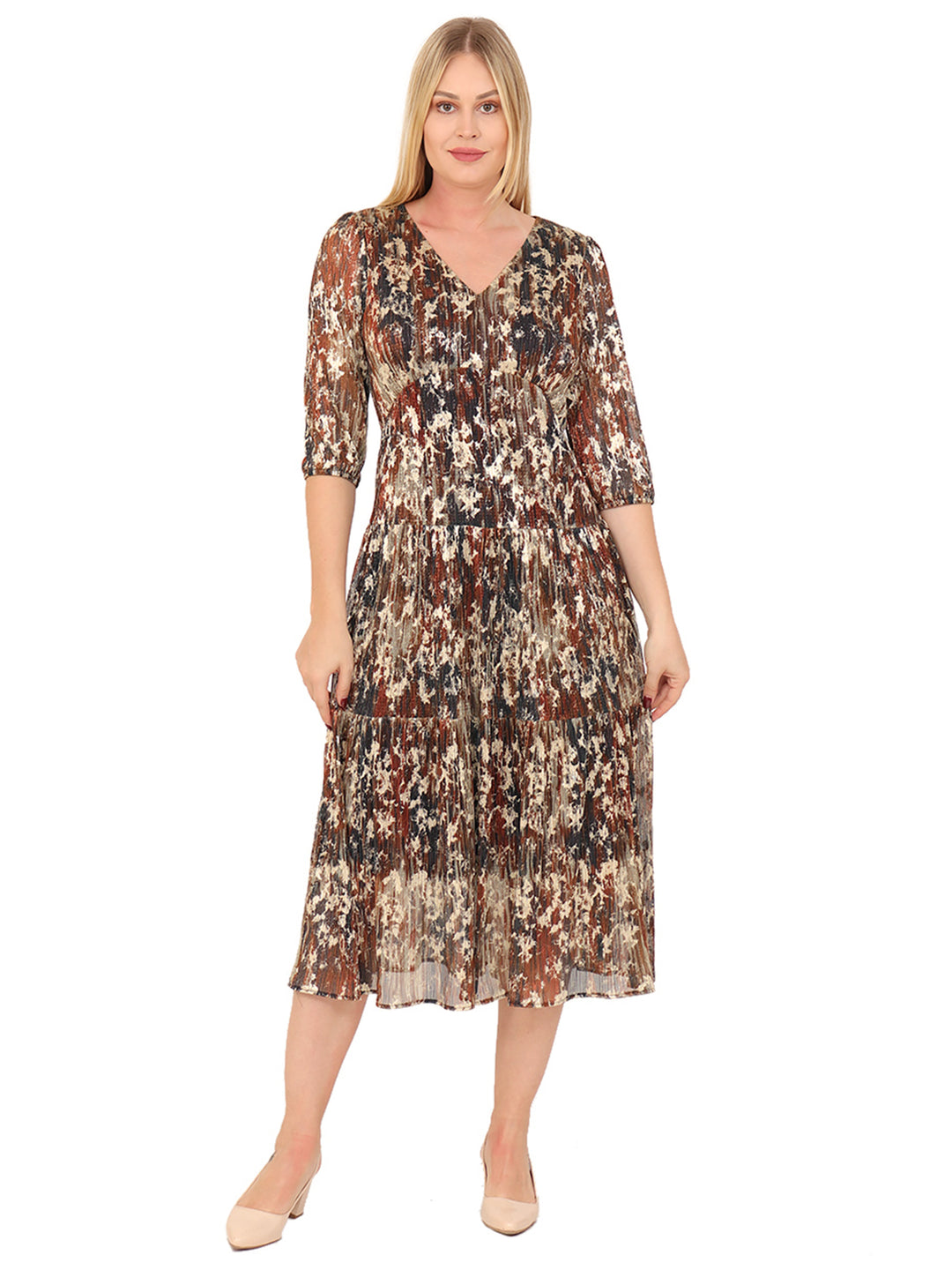 Vestido Cuello V , Manga 3/4, Largo, Estampada