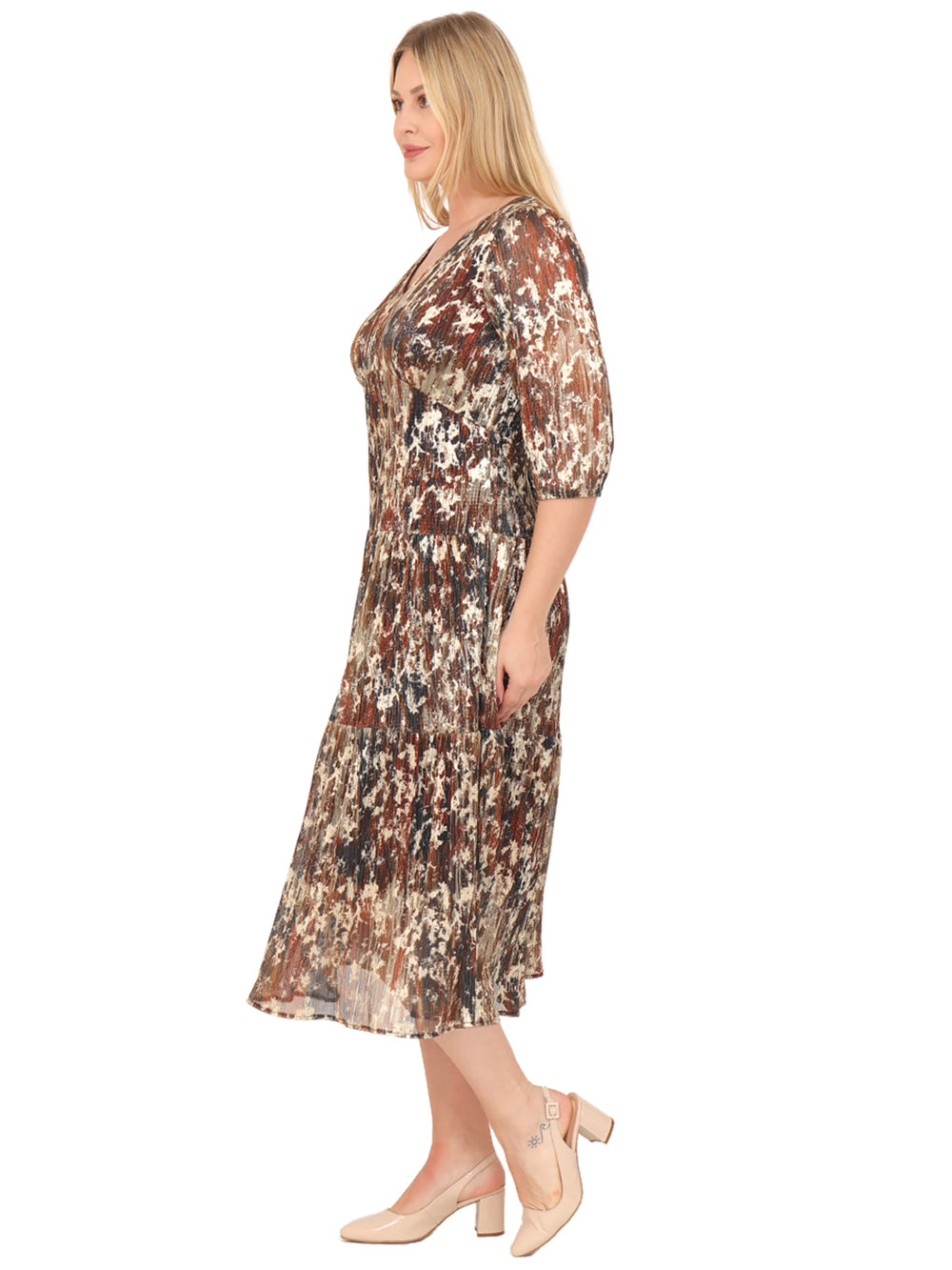 Vestido Cuello V Cruzado, Manga 3/4, Estampado