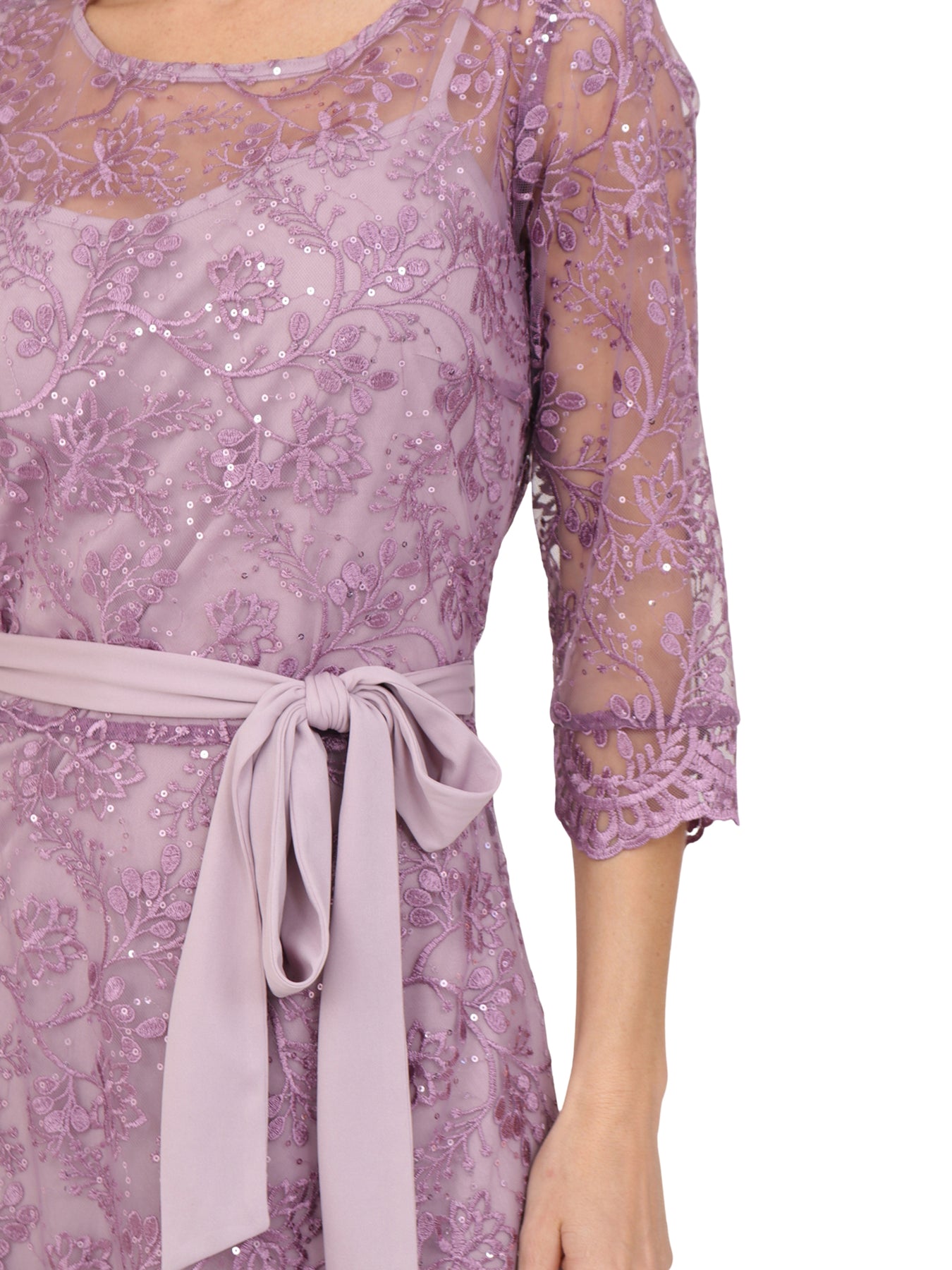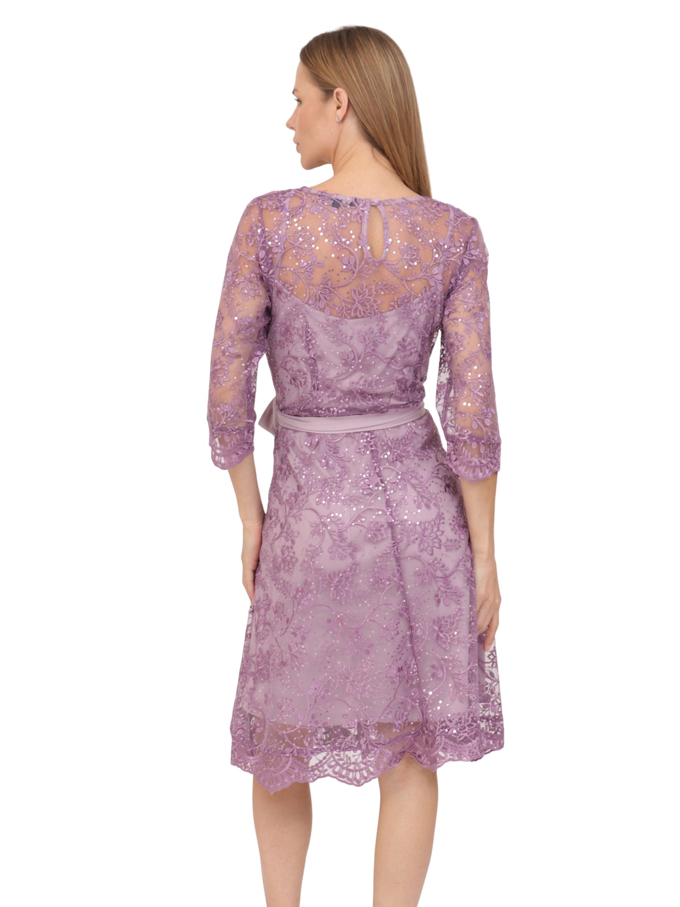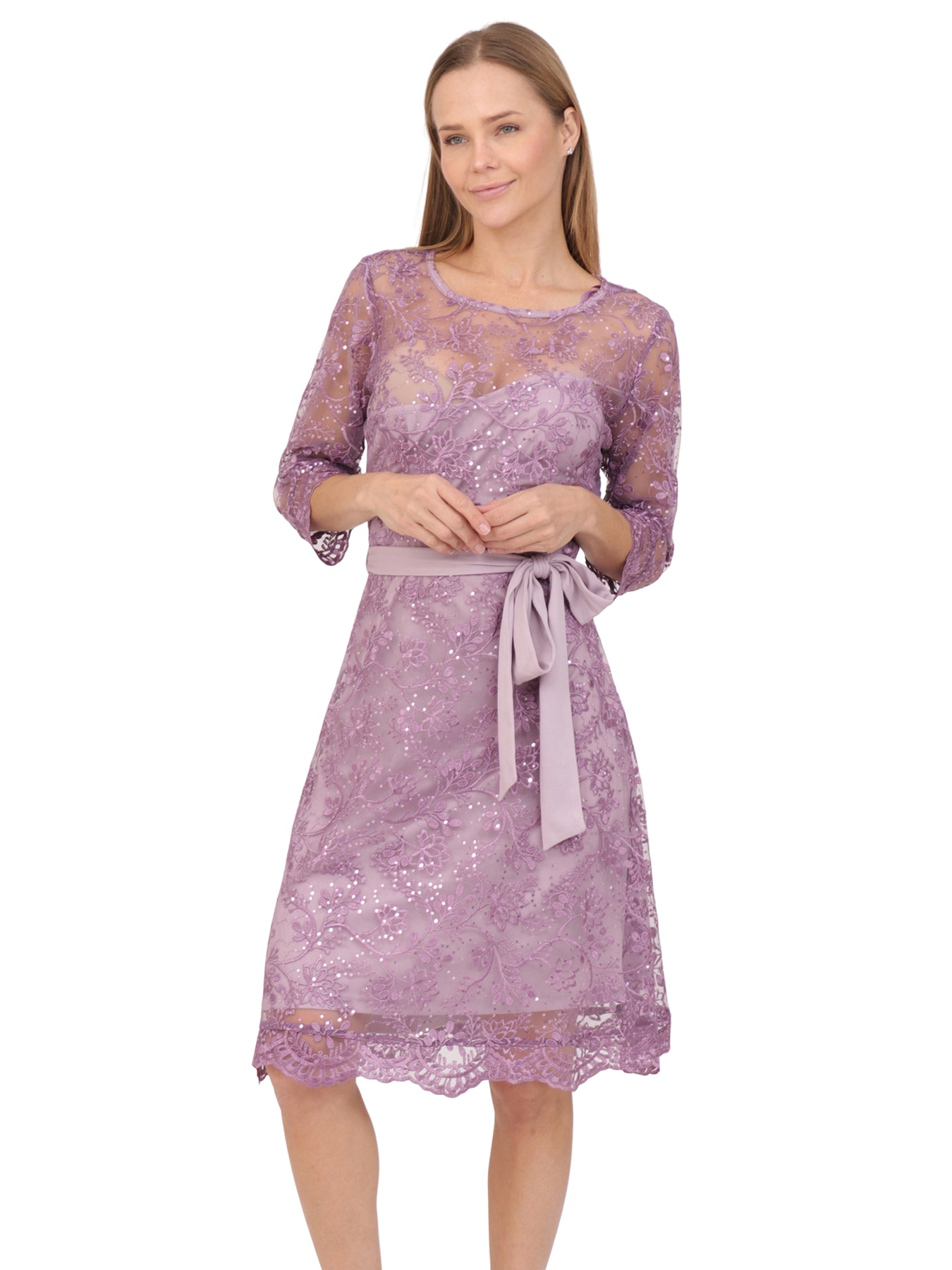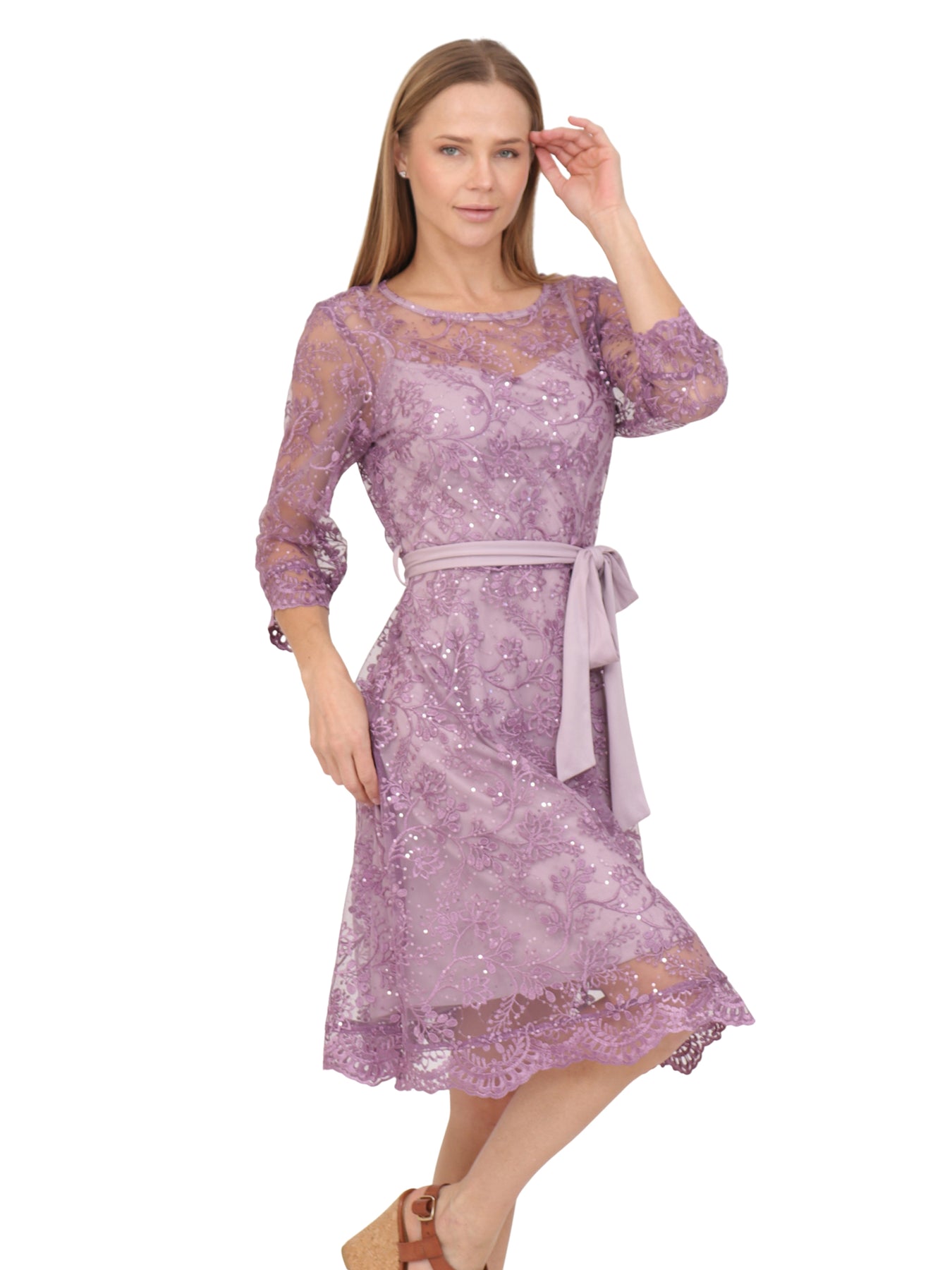 Vestido  Cuello Redondo, Manga 3/4, Bordado