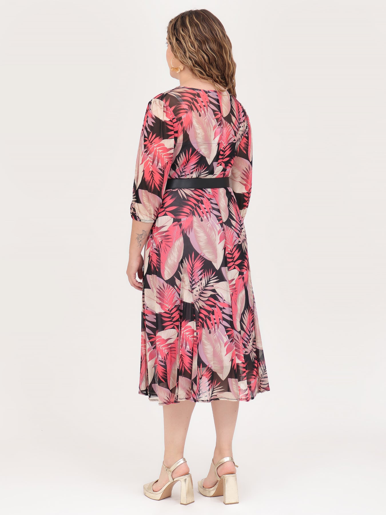Vestido Cuello Redondo, Manga 3/4, Recto, Estampado