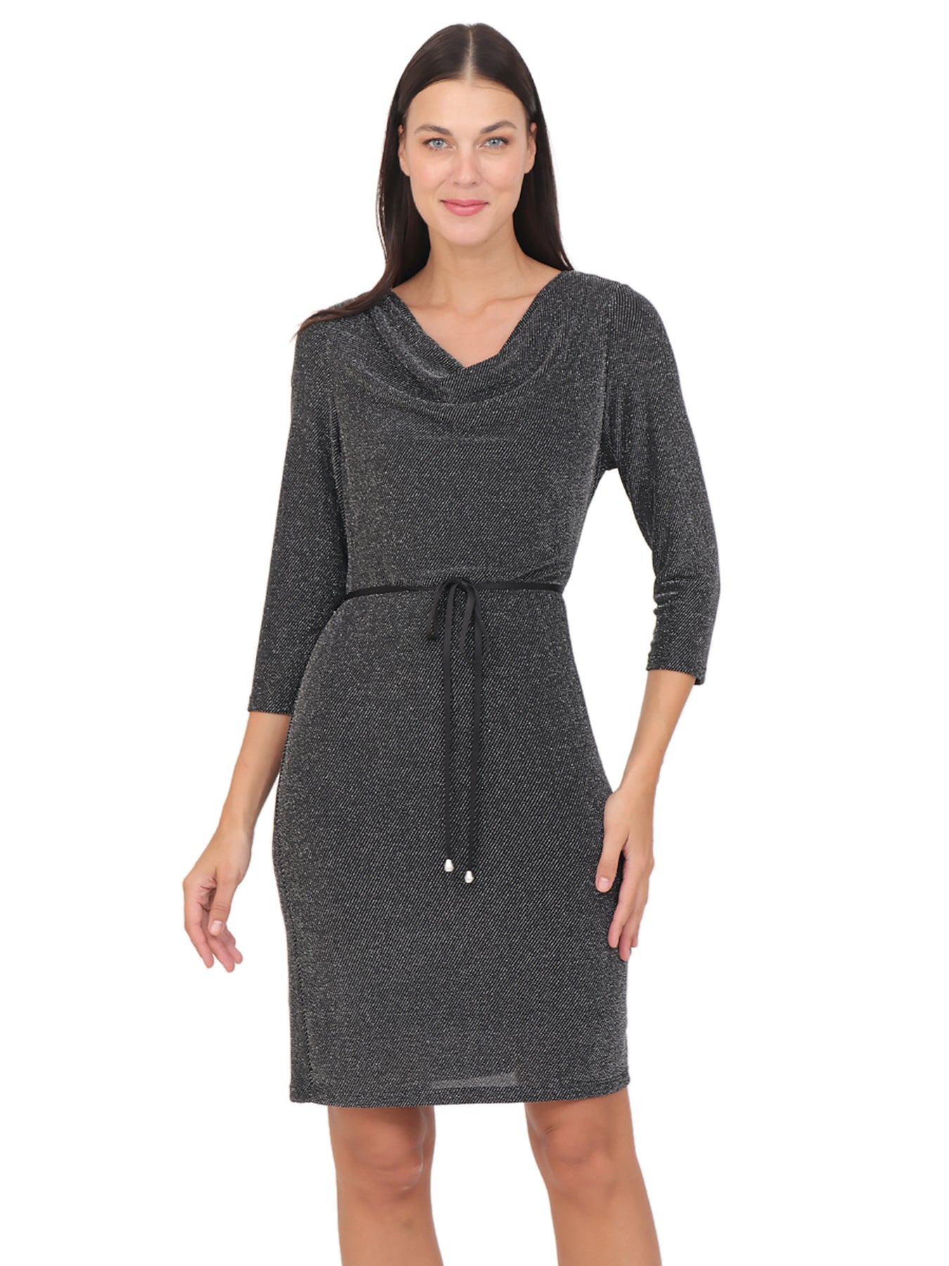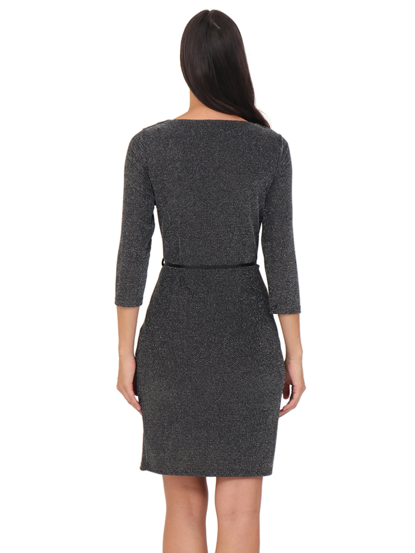 Vestido Cuello Redondo, Manga 3/4, Recto, Estampado en Brillos